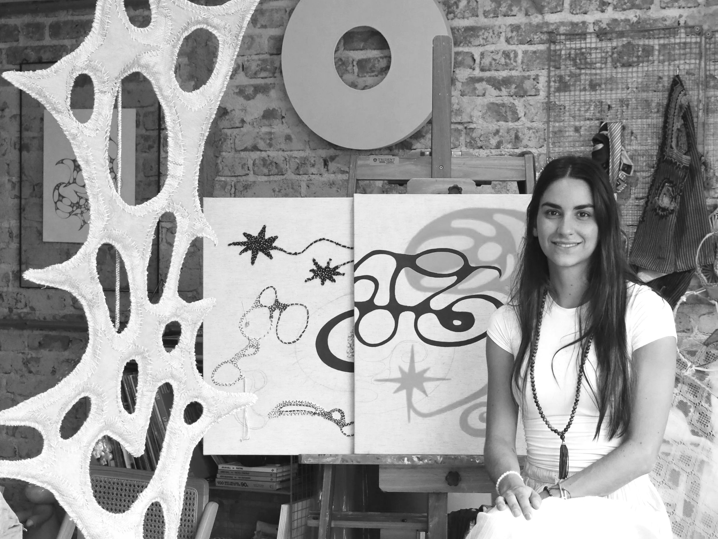 Toia Tostes é uma artista visual que desenvolve sua pesquisa focando no uso de tecidos, costura e desenho como linguagem plástica. Com passagem acadêmica em arquitetura, sua prática investiga a forma e suas possibilidades a partir da rejeição de estruturas fixas.